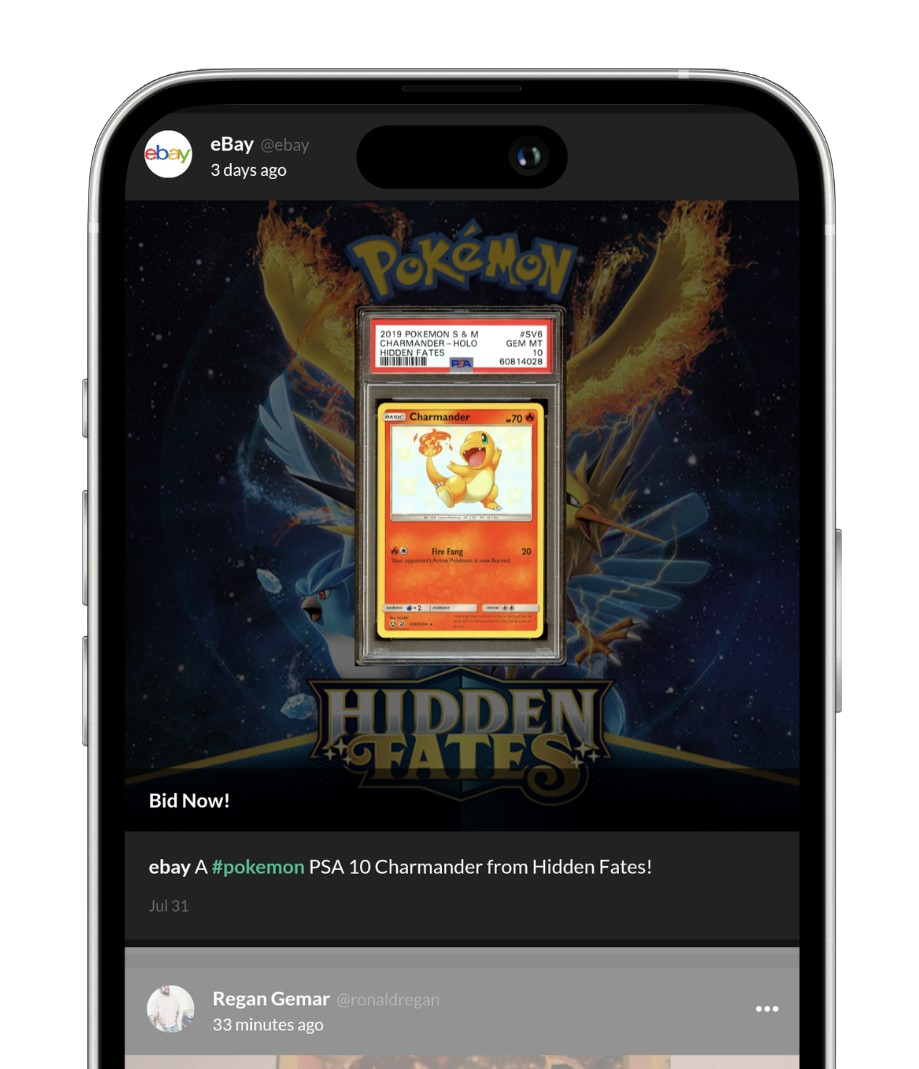 Collectr supports a variety of content mediums including auctions, live streams, external links and more!